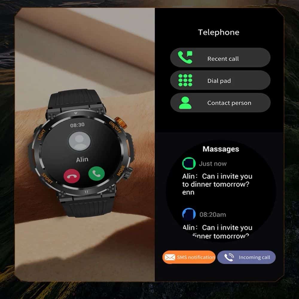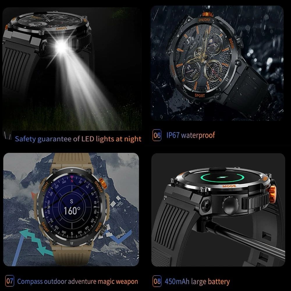 Designed for those who love an active lifestyle, this rugged smartwatch is built to withstand extreme conditions while keeping you connected. With Bluetooth calling, advanced fitness tracking, and a long-lasting battery, it’s the perfect wearable for outdoor enthusiasts, athletes, and professionals.